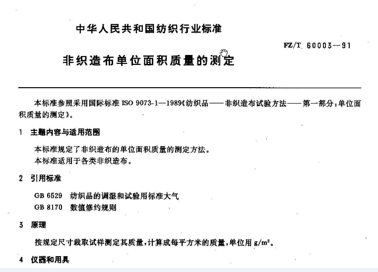 fz/t 60003-1991《非織造布單位面積質量的測定》方法