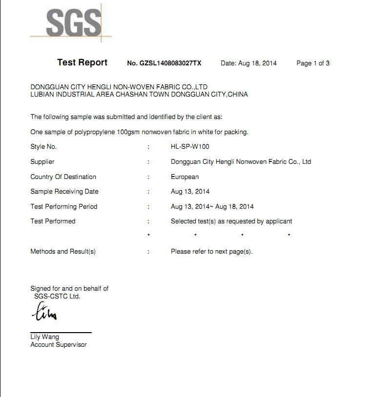 SGS-全新料白色100g無紡布耐磨測試-歐盟標(biāo)準(zhǔn)